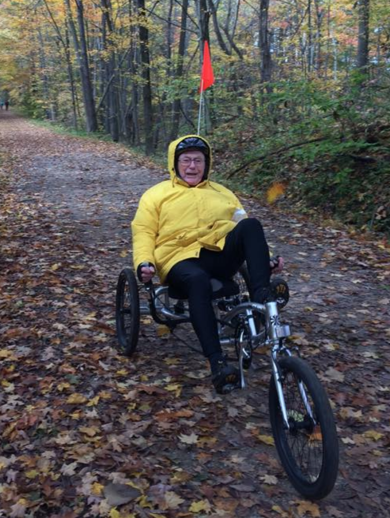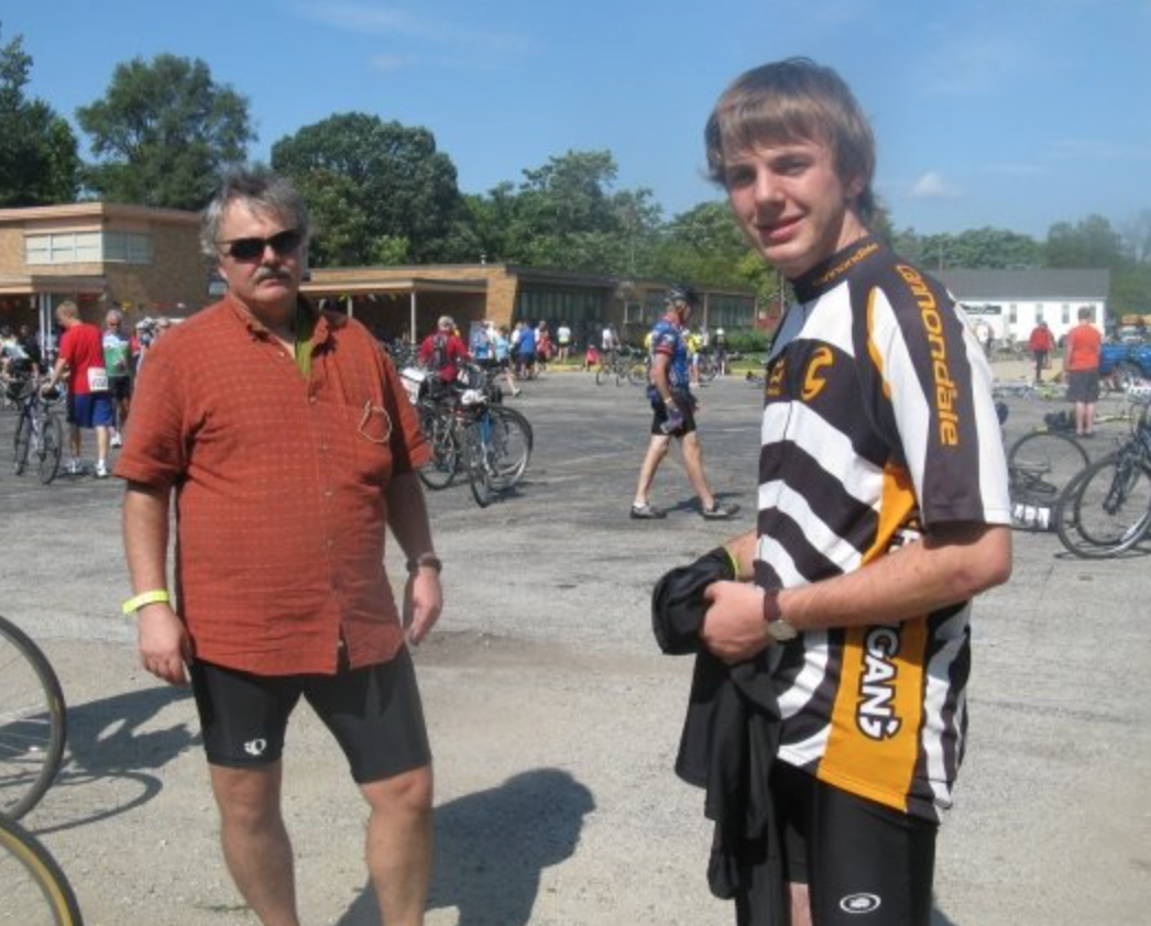 My Grandfather was Don Jackson Jr. Him and my Grandmother, Dorothy (Klute) were both teachers and an inspiration to many in South Haven. When Don retired from teaching he was given a bicycle as a retirement gift. He hadn't been a biker at all before. Shortly after my grandpa and his brother took some of their kids on their first bike trip. They decided on a small trip from Washington to Michigan. They prepared by riding from South Haven to Saugatuck and Back. After surviving that cross country trip my family got hooked on biking. My grandpa and his brother rode 100 miles in all 50 states along with many other trips. Including taking most all of his grandkids on Apple Cider Centuries and the P.A.L.M.